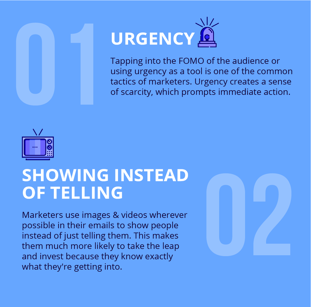 Tapping into the FOMO of the audience or using urgency as a tool is one of the common tactics of marketers. Urgency creates a sense of scarcity, which prompts immediate action.