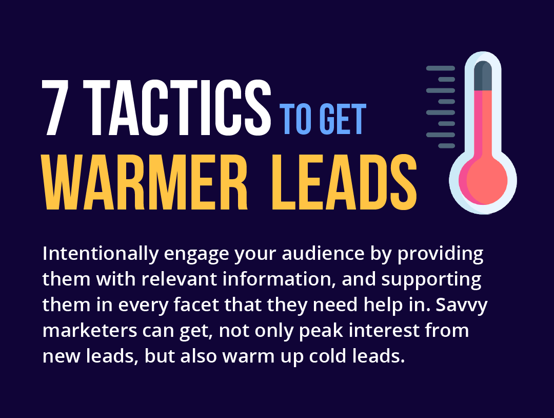 As part of your lead generation methodology, your focus should be to intentionally engage your audience by providing them with relevant information, and supporting them in every facet that they need help in. Savvy marketers can get not only peak interest from new leads but also help warm up cold leads.