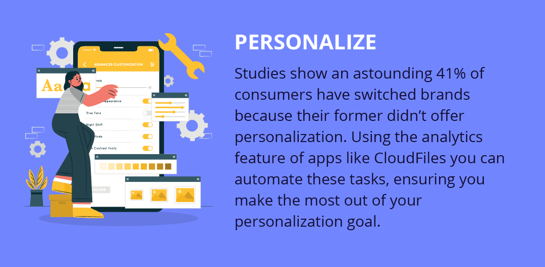 Using the analytics feature of file sharing apps like CloudFiles will automate these tasks for you, thereby ensuring you make the most out of your personalization goal.