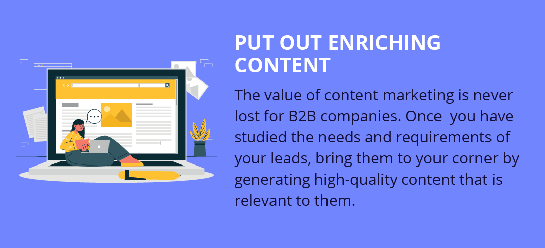 The value of content marketing is never lost for B2B companies. Once you have studied the needs and requirements of your leads, bring them to your corner by generating high-quality content that is relevant to them.
