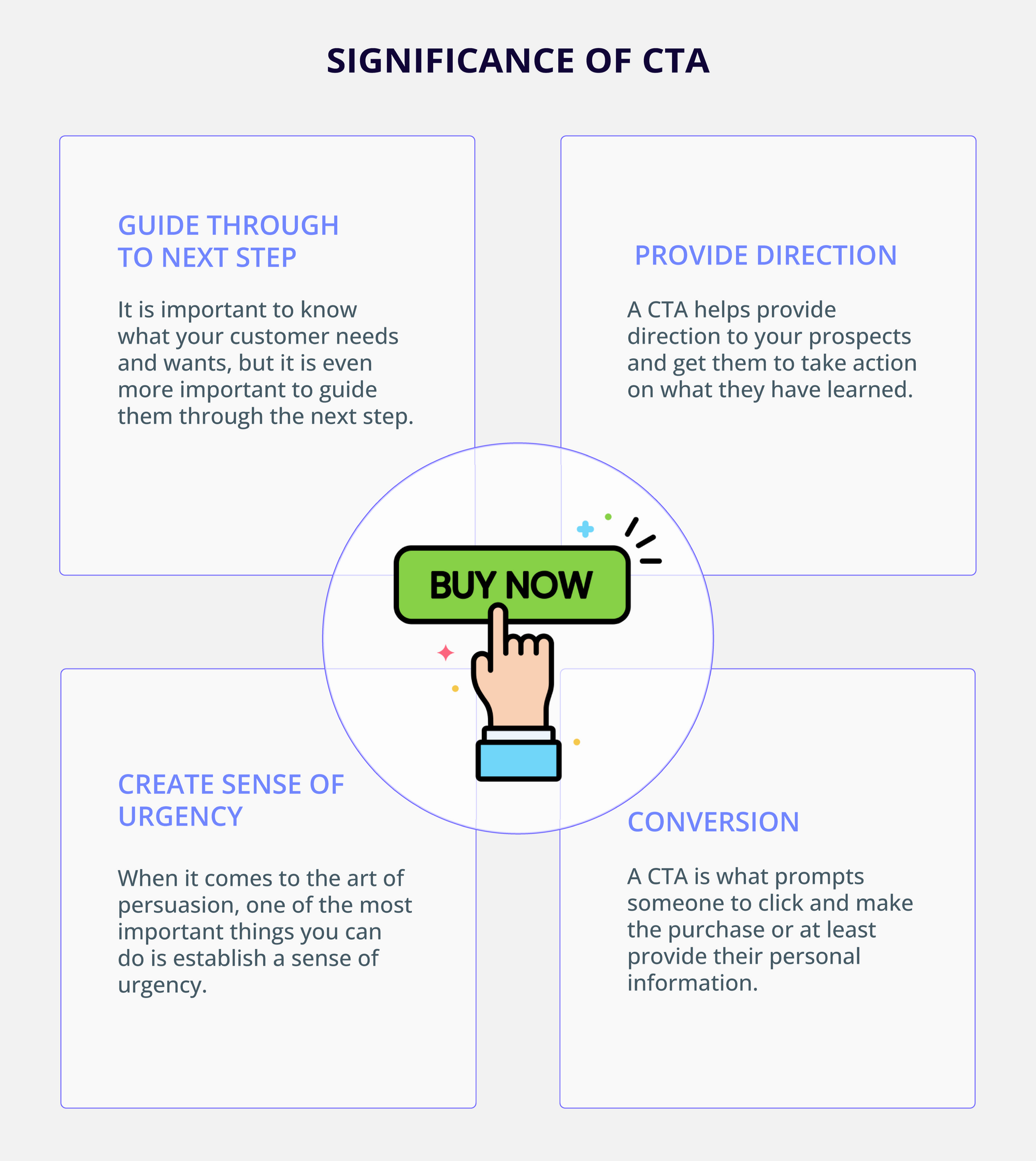 The CTA (call-to-action) may be the single most important element of a conversion-focused marketing campaign. A CTA is what prompts someone to click and make the purchase or at least provide the details. If you have a great CTA, you can increase your sales by manifold. That's huge.