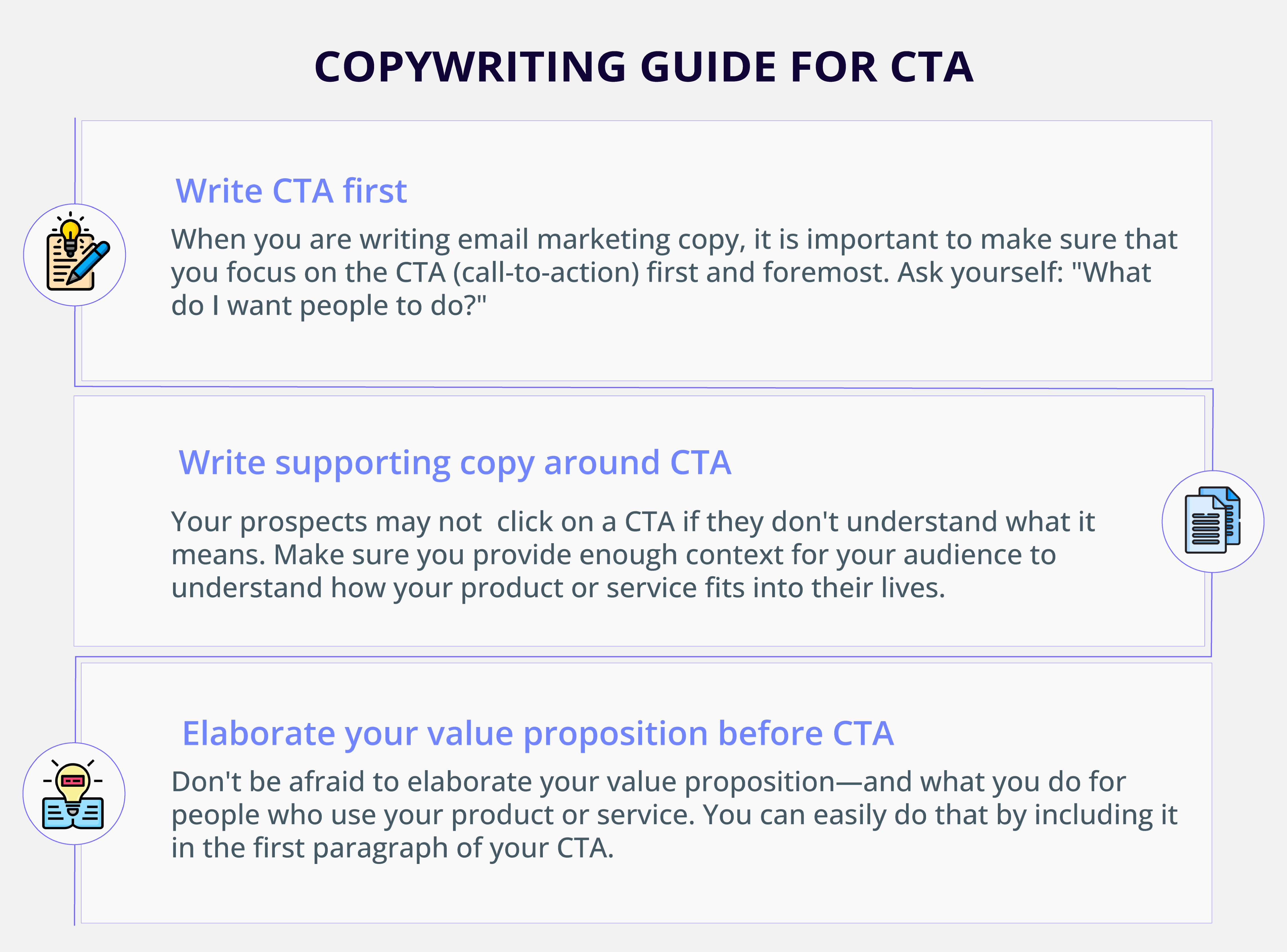 When you are writing email marketing copy, it is important to make sure that you focus on the CTA (call-to-action) first and foremost. In email marketing, your CTA should be the first thing people see when they open your email. This is where they will decide whether or not they want to click through and see what else you have to offer.