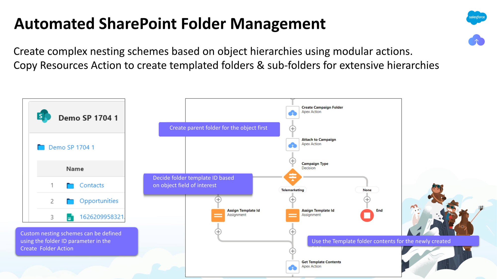Imagine you are a sales representative handling documents like sales proposals, presentations, and agreements related to customer accounts and opportunities. You recognise the need for an integrated solution to automate folder hierarchy when dealing with customer accounts and opportunities. The manual creation and maintenance of folder hierarchies can be time-consuming and may lead to inconsistencies in document organisation.