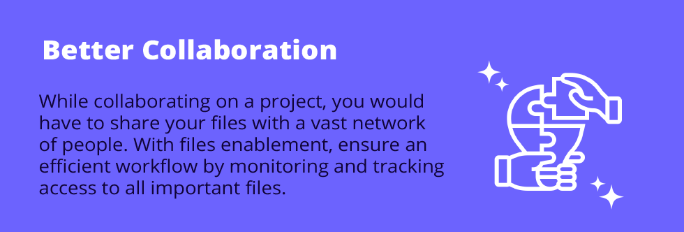 Files enablement calls for easier sharing of documents among concerned personnel. While collaborating on a project, you would have to share your files with a vast network of people. By practicing files enablement, you ensure an efficient workflow since you can monitor and permit access to all your files, leading to better productivity.