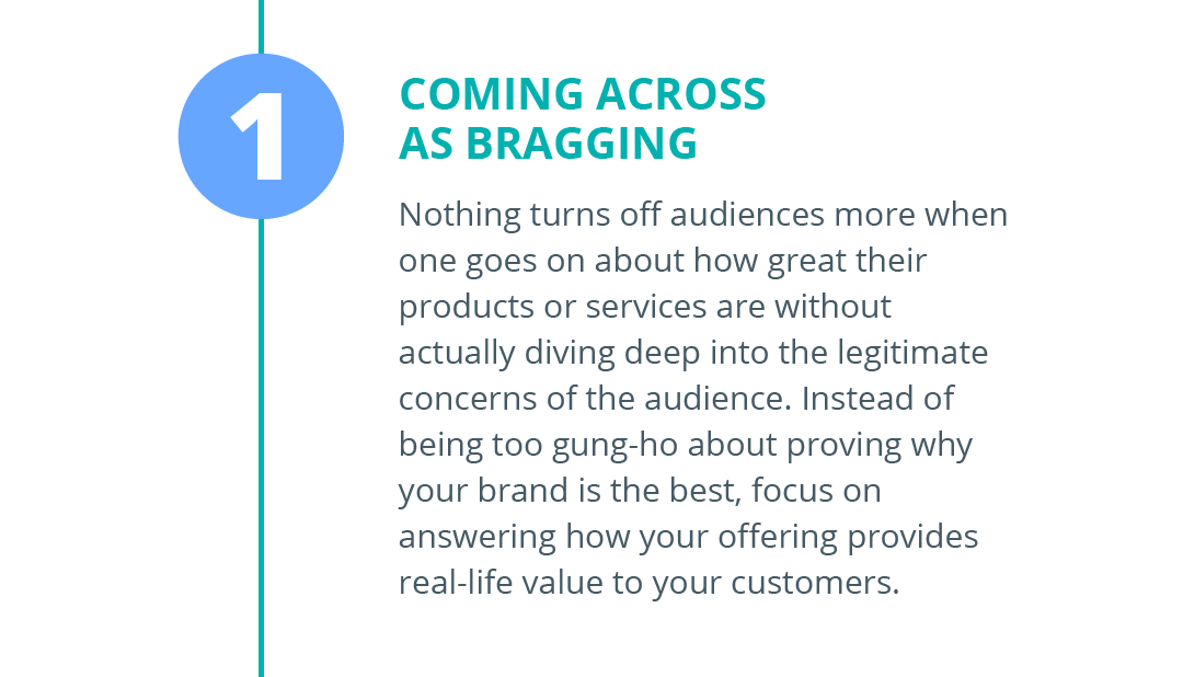 Feel free to beat your own drum but at least articulate it in a way that doesn’t come across as bragging. Instead of being too gung-ho about proving why your brand is the best, try and focus on answering how your offering provides real-life value to your customers.