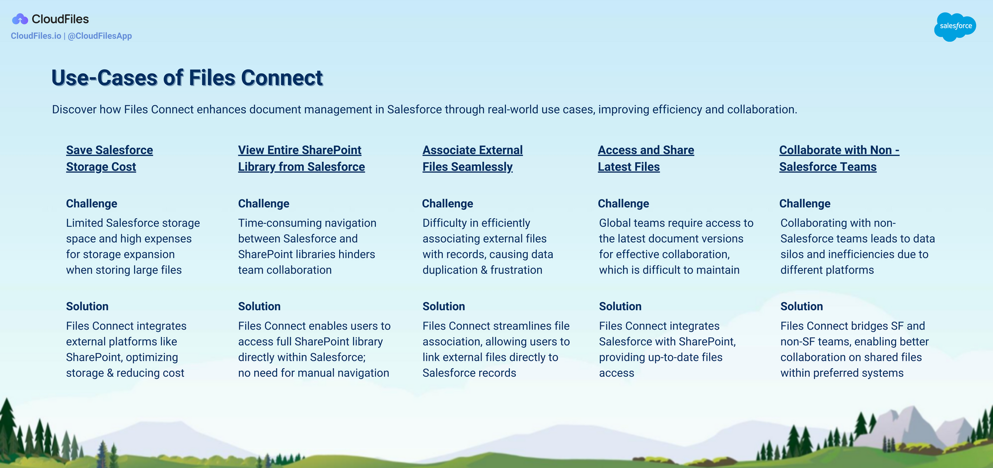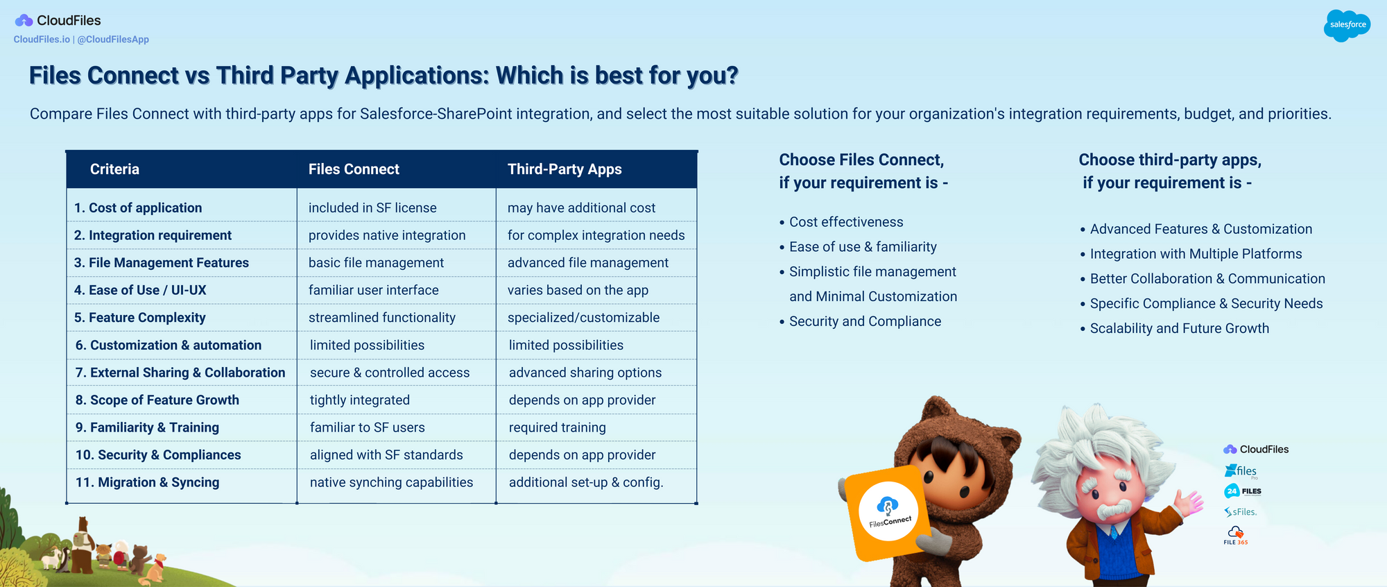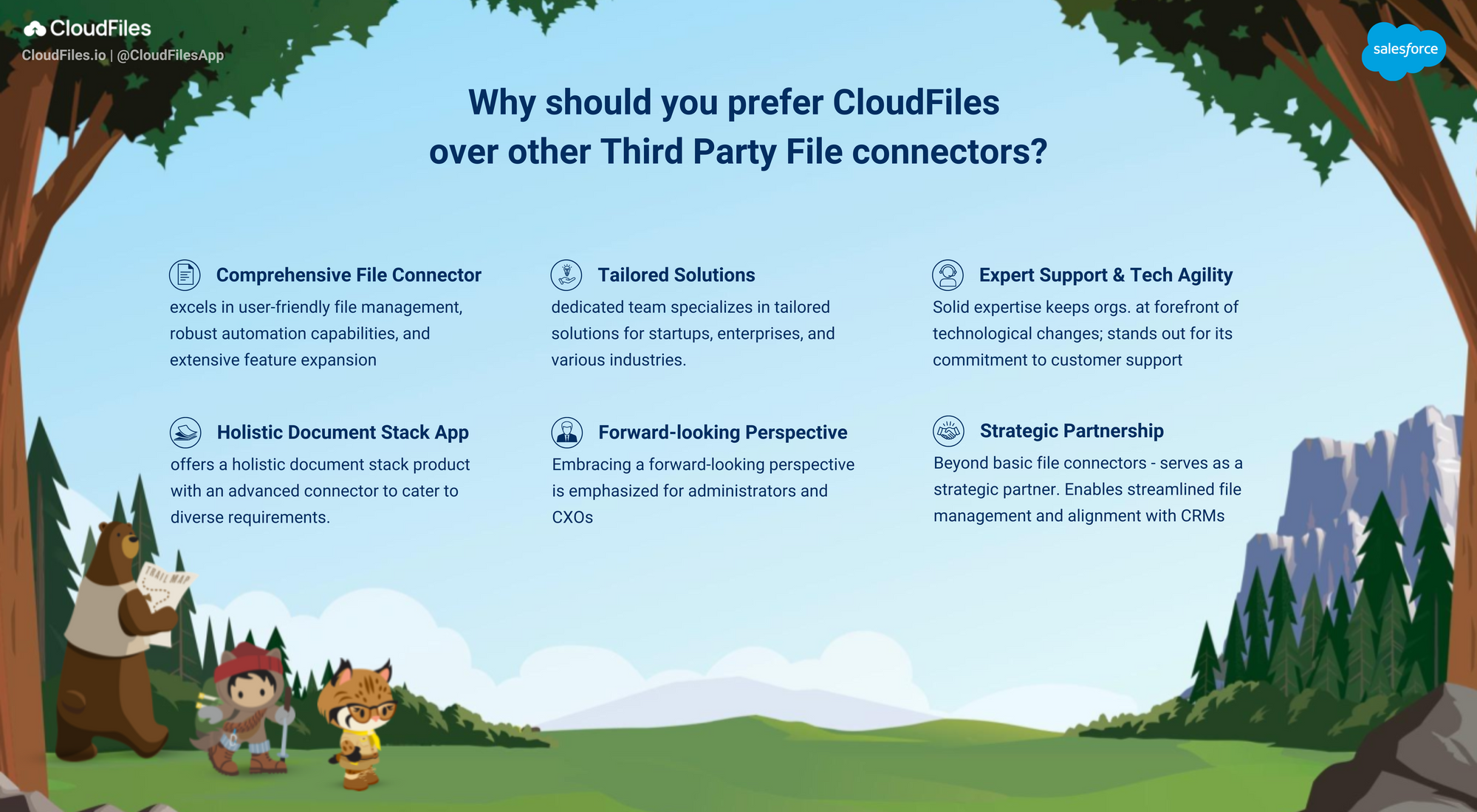 - Why should you prefer Cloudfiles over other Third Party File connectors? - In this section, we've outlined all the compelling reasons that make CloudFiles the preferred choice as your trusted file connector solution for Salesforce.