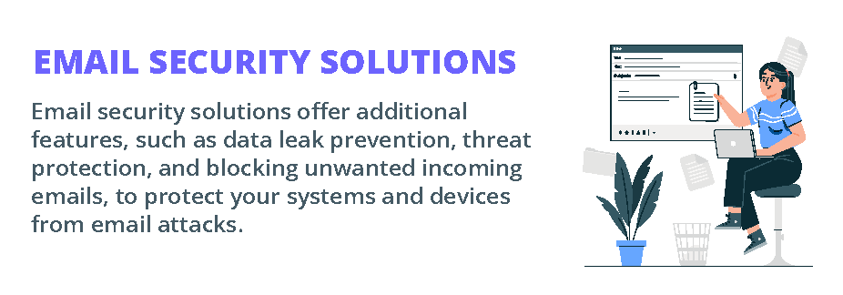 Email security solutions offer additional features to protect your systems and devices from email attacks. They also prevent unauthorized access to your email and monitor outbound emails to protect your mailbox. Data leak prevention, threat protection, and blocking unwanted incoming emails are other features of email security solutions.
