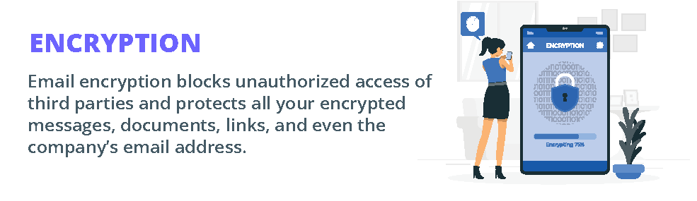 Email encryption is one way to keep your confidential data safe. It blocks unauthorized access from third parties and protects all your encrypted messages, documents, links, and your company’s email address too. Some email security solutions also provide email encryption services.